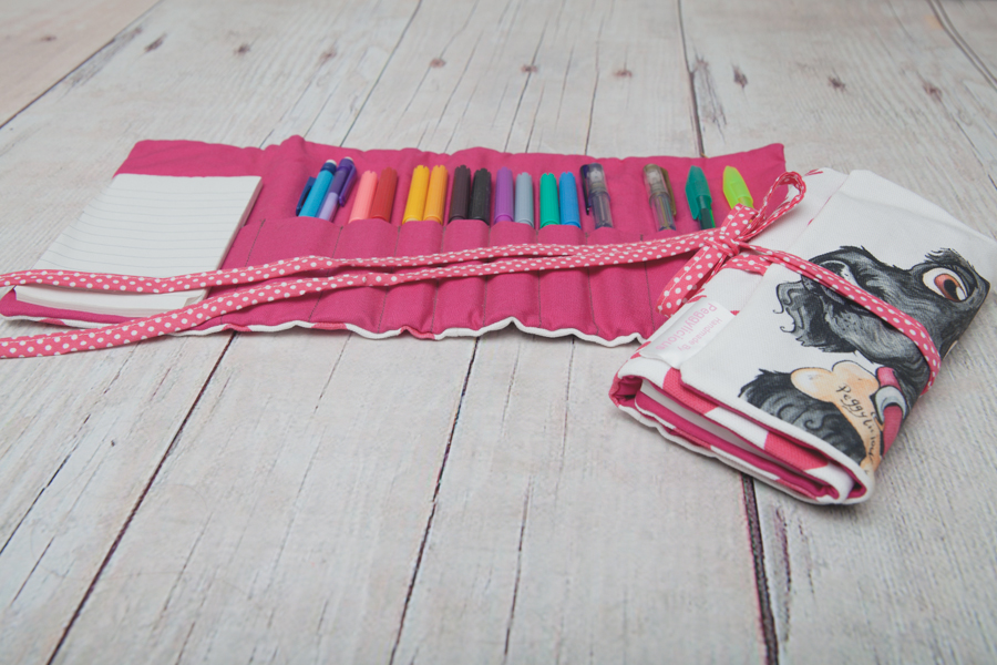 peg-132Includes a little notebook and a selection of pens. Back of roll has pink pawprint material.